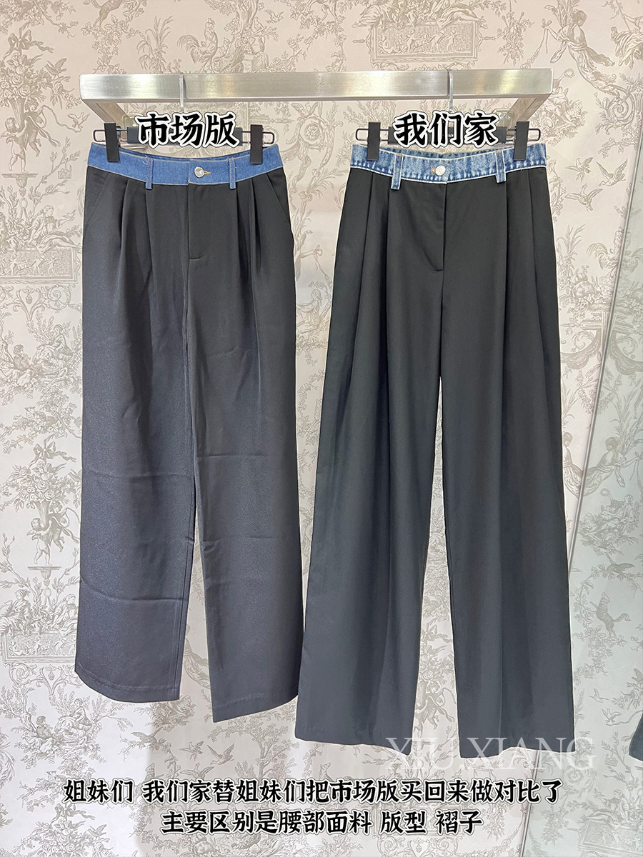 Non-Market Goods】Cyndi Wang Style~ Stylish Denim Waistband Patchwork Straight-Leg Slimming Dress Pants for Women