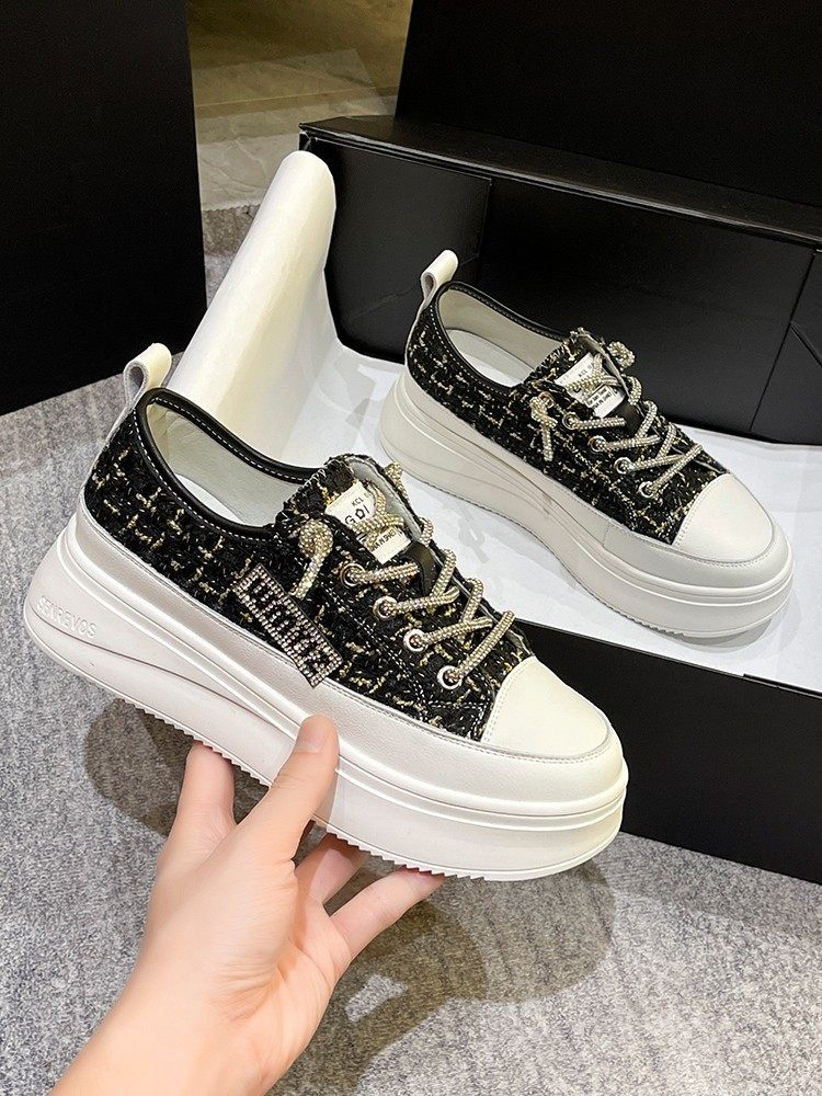 Hong Kong Genuine Leather Rhinestone Women's Canvas Shoes 2025 Spring New Style ins Trendy Versatile Thick-Soled Casual Sneakers White Shoes