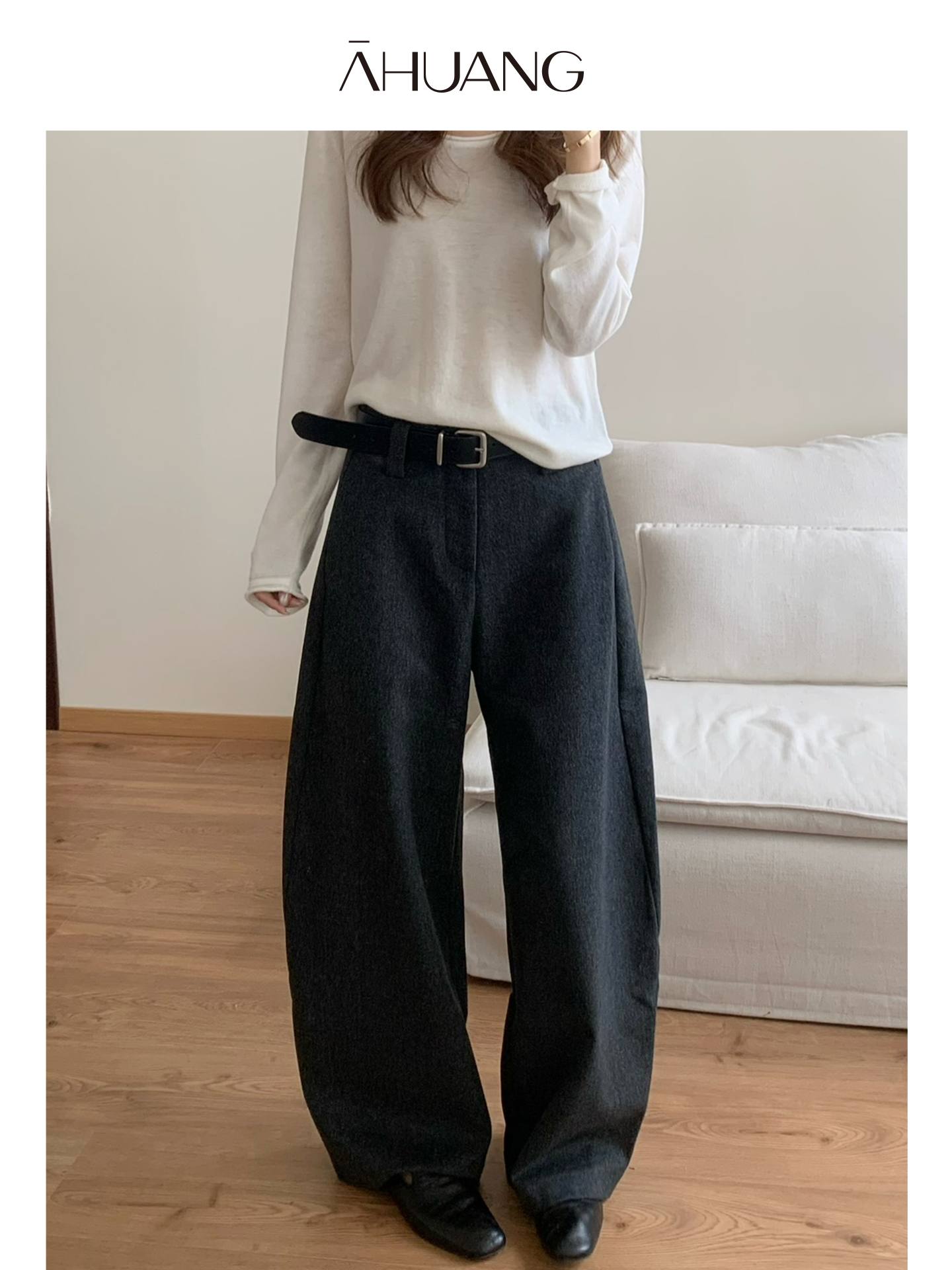 Wool Scimitar Pants for Women, Autumn Style, Work Pants, High-Waisted, Casual Wide-Leg Suit Pants, Banana Sickle Pants 582