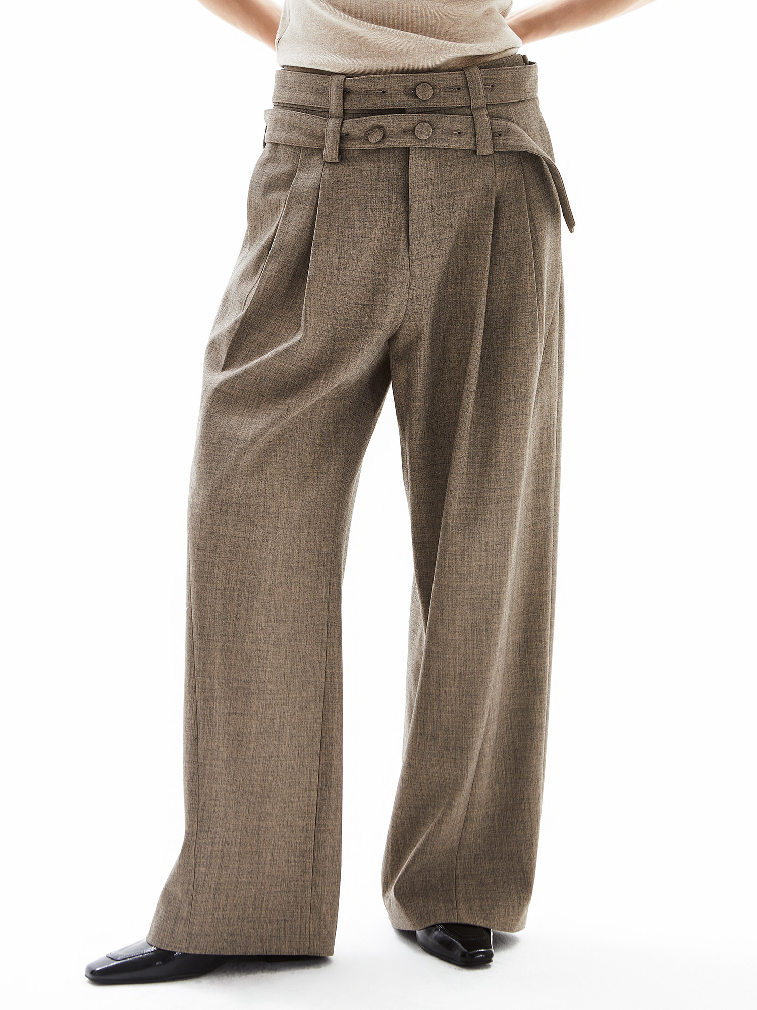 Future of Xanthoderm Brown Coral Pleated Three-Dimensional Cut Double Belt High-End Dress Pants