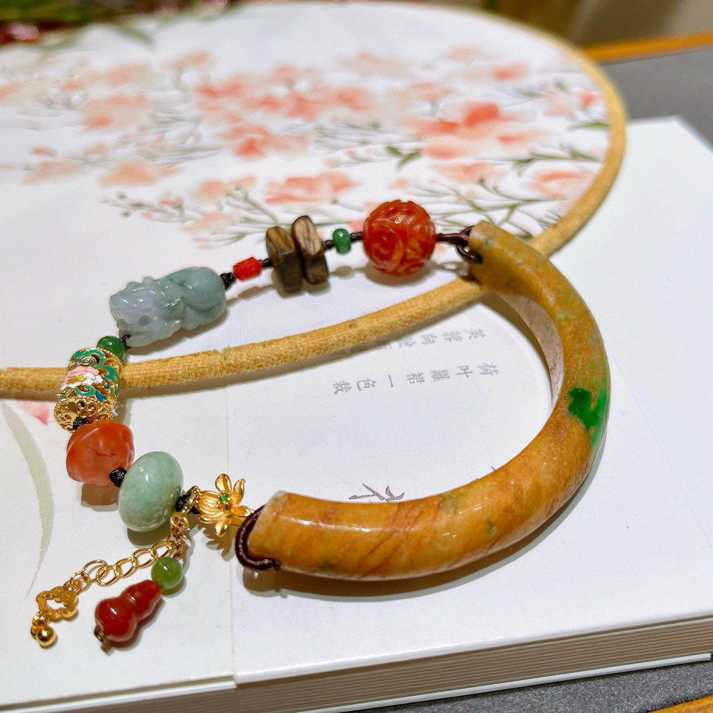 Natural Jade Half Bracelet Multi-Gemstone Bracelet, Paired With: Red Jade, Agarwood, Jade Pixiu, Traditional Accessories