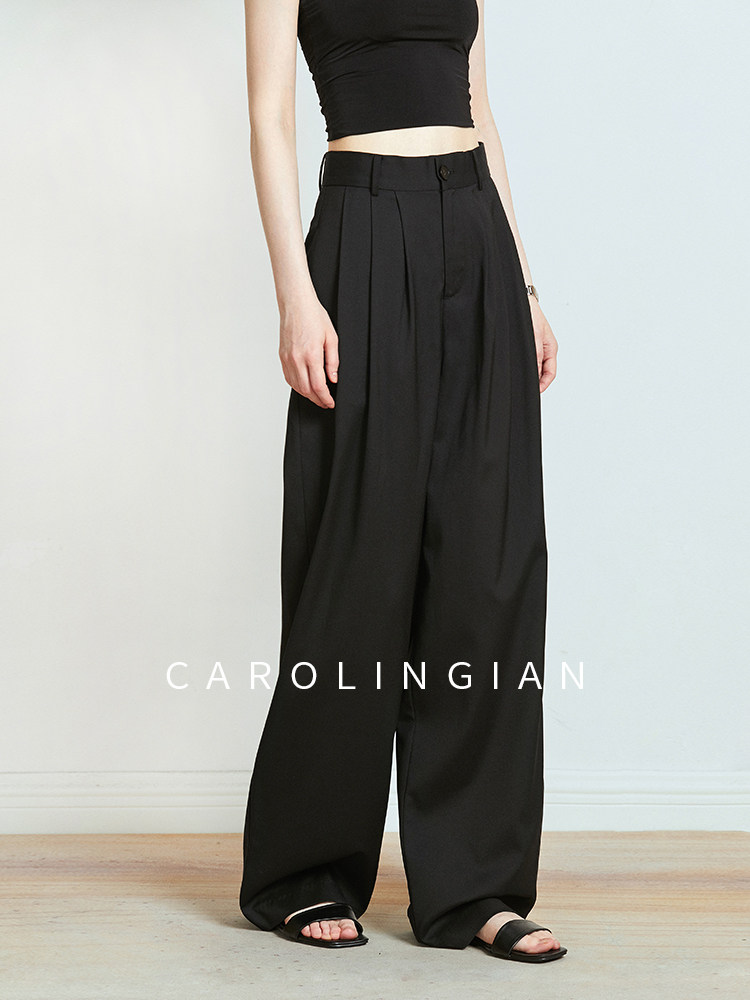 Carolingian Relaxed Style B! Fine-Spun Japanese Acetate Wool Loose Wide-Leg Pants, Elegant and Slimming Dress Pants