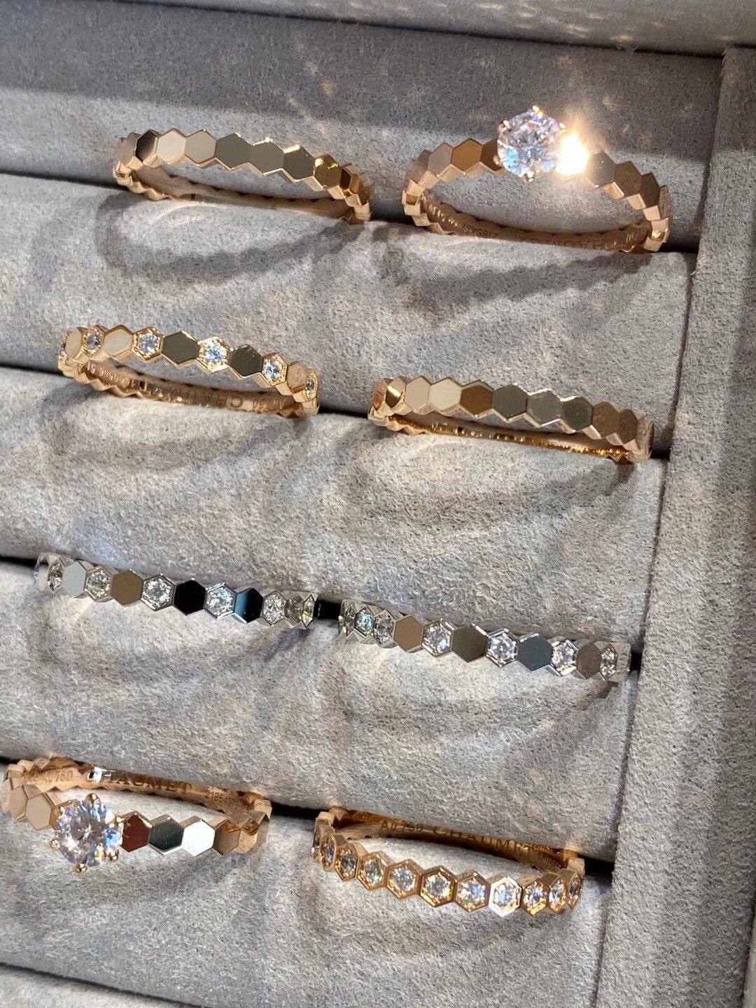 Light Luxury Honeycomb Ring for Women, Full of Diamonds, 925 Silver Plated with 18K Rose Gold, Honeycomb Stackable Half-Row Diamond Ring with a High-End Feel for the Index Finger
