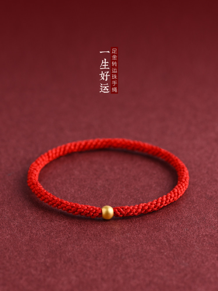 999 Pure Gold Transfer Bead Red String Bracelet for Men and Women, Plain String Pure Gold Zodiac Year Safety Handmade Woven Bracelet