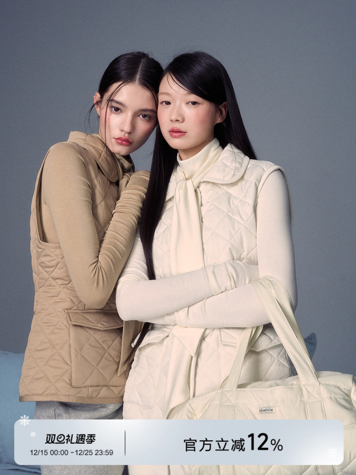 Laluneduciel Solid Color Simple and Playful Quilted Cotton Vest for Women 2024 Winter Casual Versatile Vest Jacket