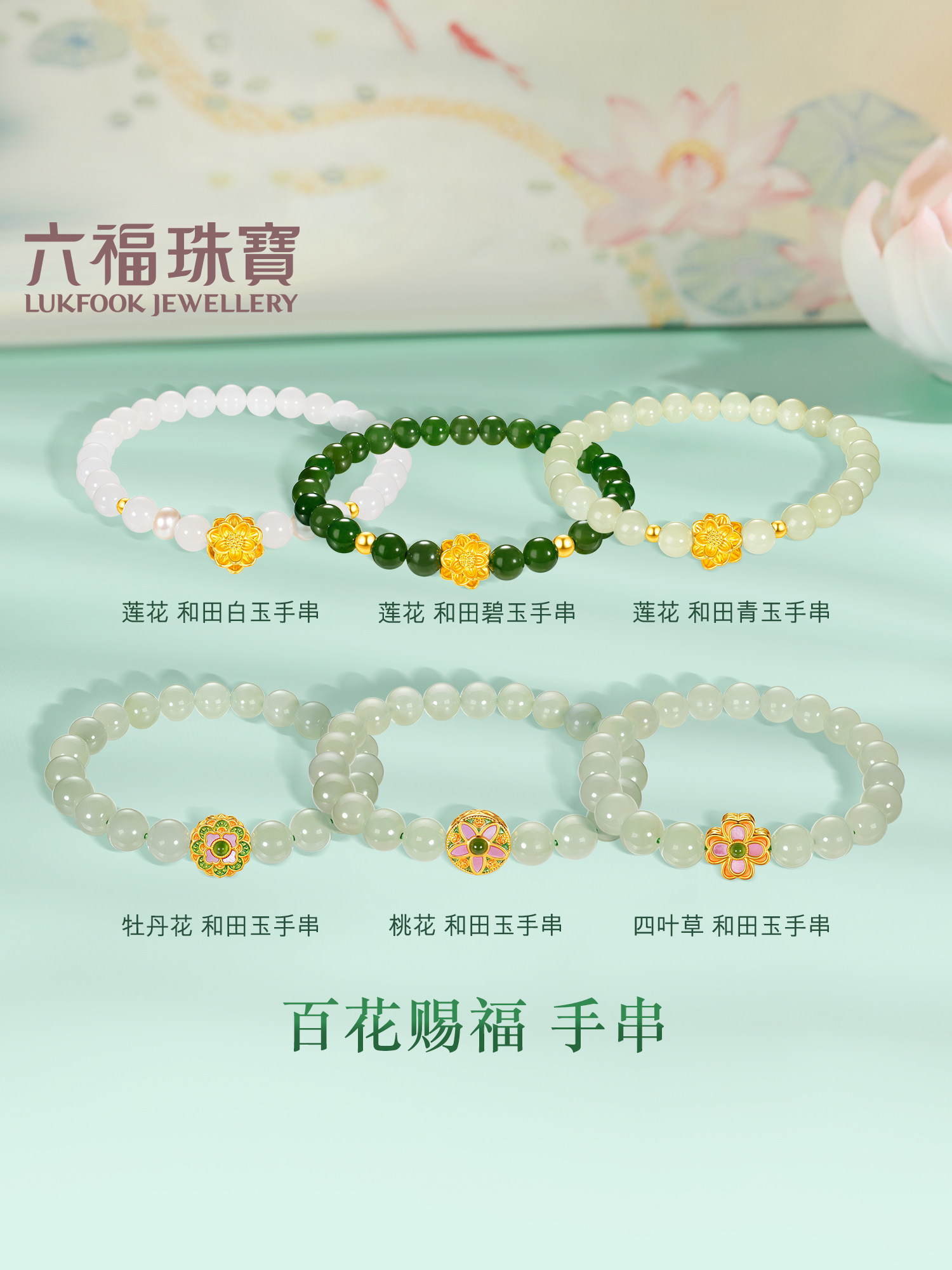 Liu Fu Jewelry Hundred Flowers Blessing Lotus Gold Bracelet Fortune Bead 6mm Hetian Jade Bracelet G31Tba1B0011