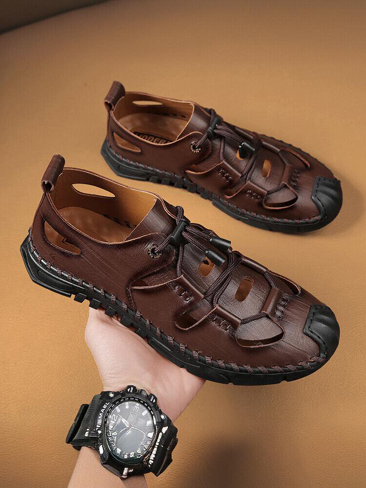 German Camel Dynamic Summer Genuine Leather Sandals for Men, Breathable Business Clogs, Outdoor Sandals, Dad Shoes