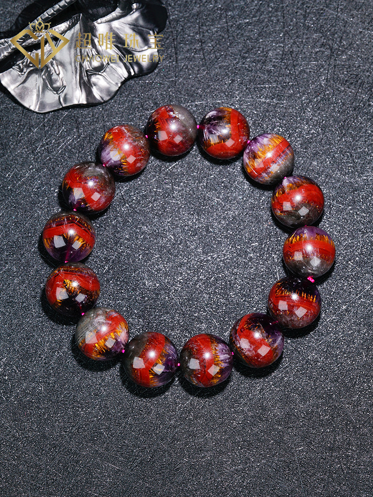 Super Unique Jewelry Natural Aurora 23 Bracelet Collectible Grade Purple Titanium Four-Color Aurora 23 Mineral Full Titanium Crystal Bracelet