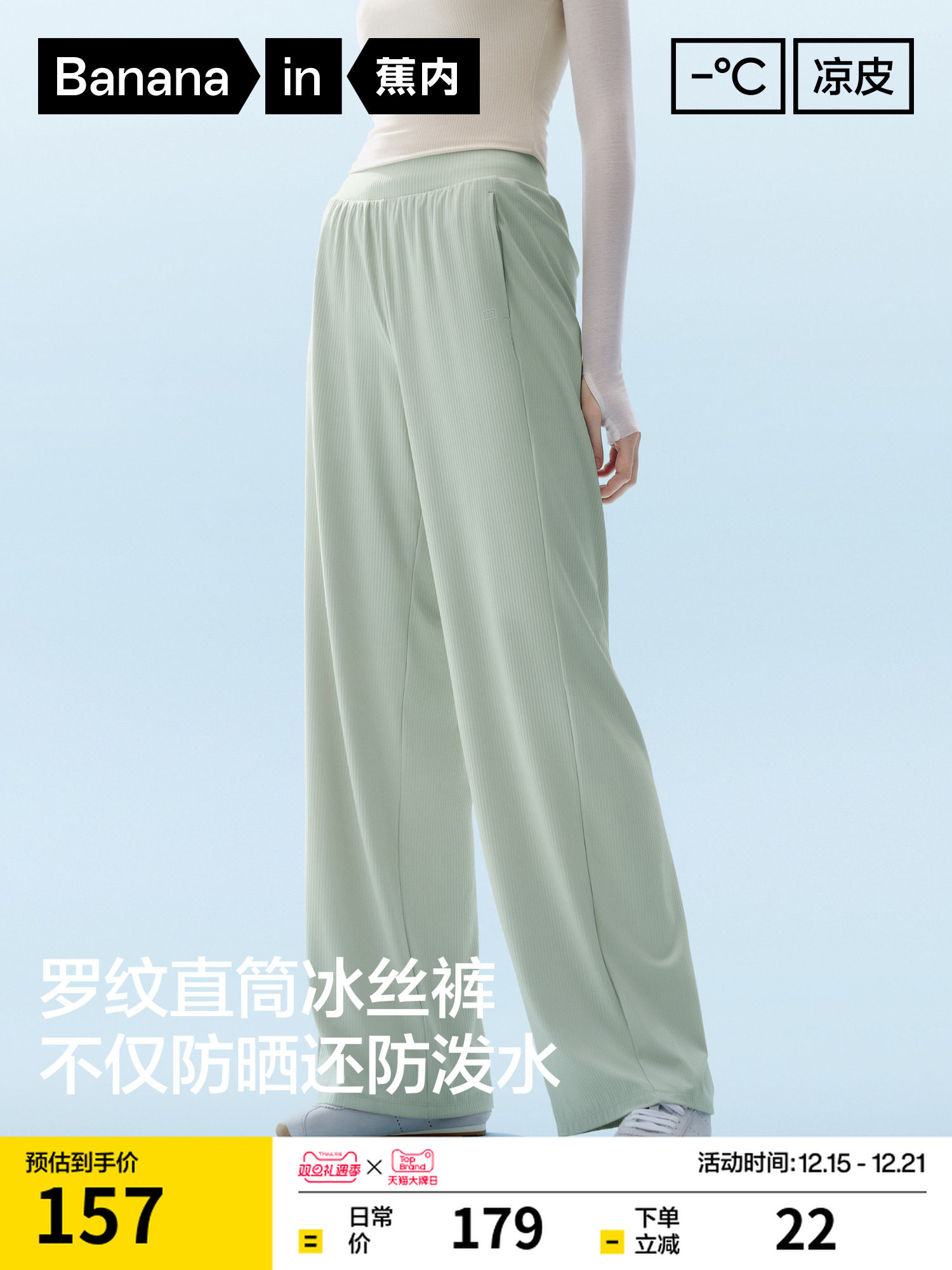 Jiao Nei Liangpi 301Cool Women's Water-Repellent Ribbed Ice Silk Straight-Leg Pants, Sun-Protective Casual Women's Pants for Spring and Summer