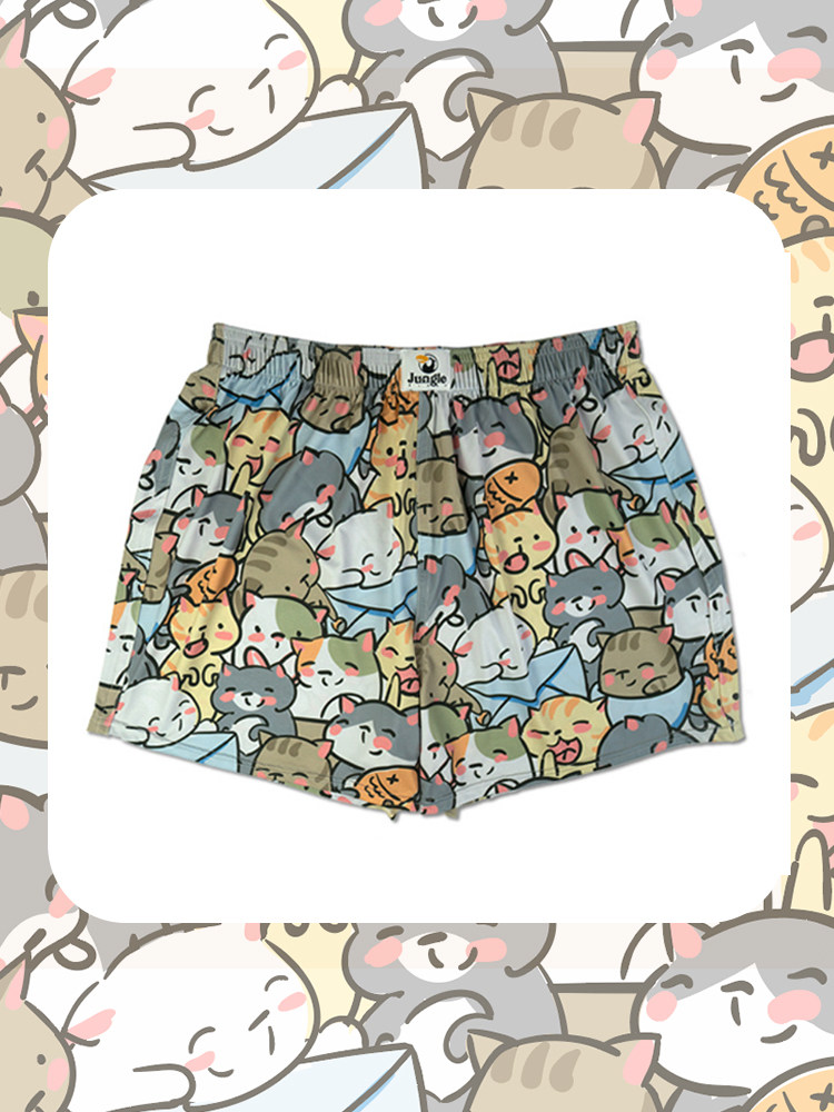 Men's Cute Ice Silk Boxer Briefs, Loose Fit, Home Shorts, Cartoon Summer Plus Size