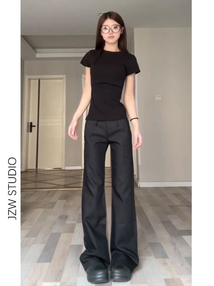 Black Flared Suit Pants for Women, 2026 Spring New Style, Low-Waisted, Slimming, Drapey, Floor-Length, Extended Bootcut Pants for a Trendy Look