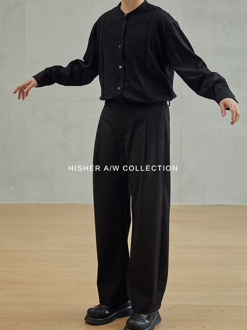 Hisher Unisex Style Petite 480g Heavyweight New Antibacterial Tr Fabric Double Pleated Scimitar Slim-Fit Dress Pants