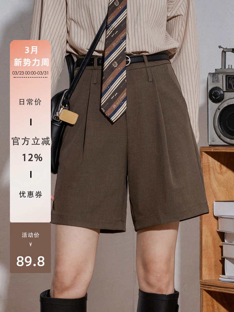 High-Waisted Straight-Leg Suit Shorts for Women, Vintage Casual Mid-Length Pants, Spring Simple and Elegant Loose Versatile Wide-Leg Shorts