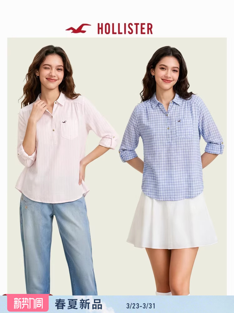 【New Colors Added】Hollister Classic Three-Button Shirt with Small Seagull Pattern for Women 340-6146