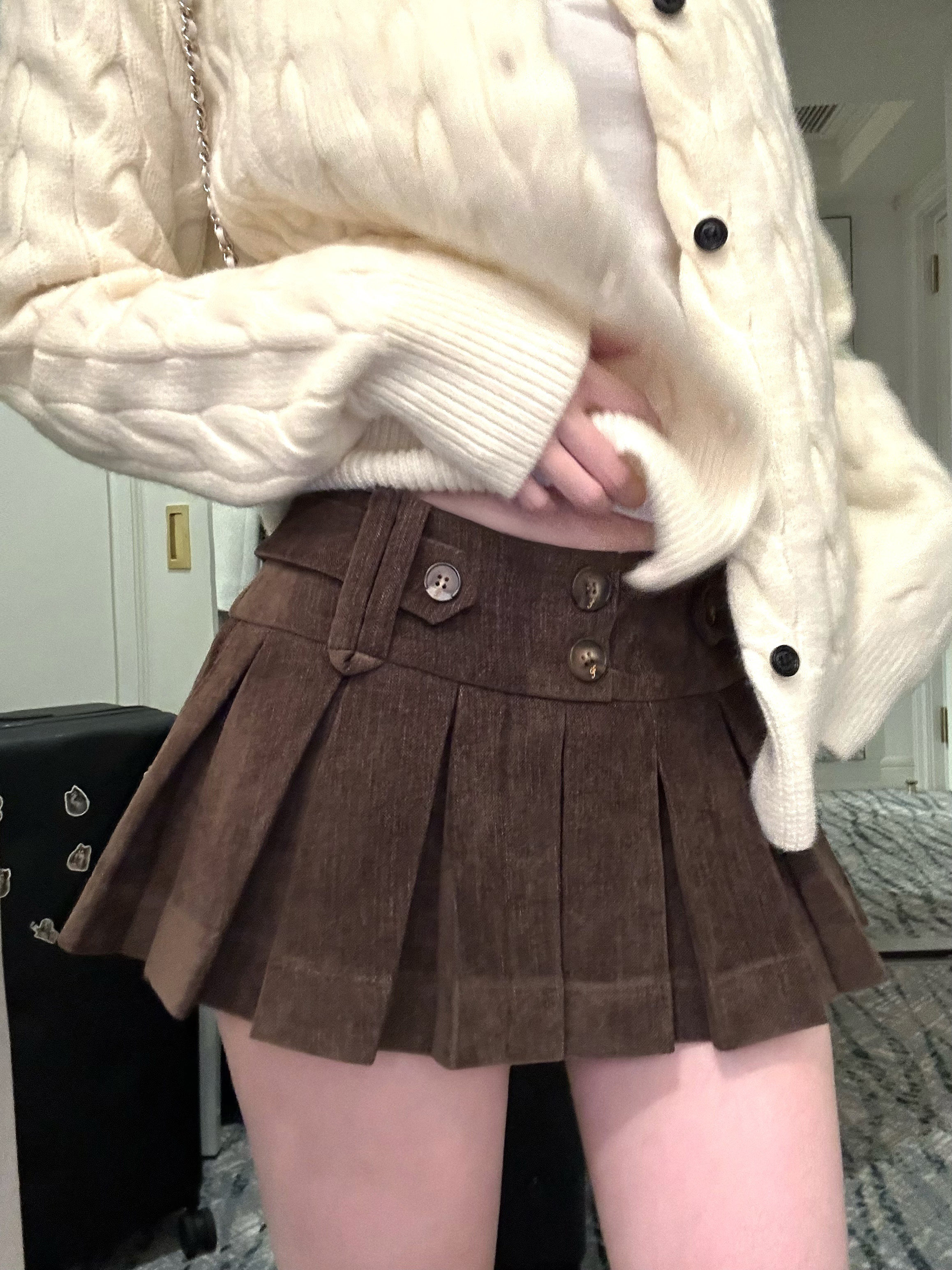 Suuuicee Shibuya Sniper Black Low-Waisted Pleated Skirt for Petite Women, Makes You Look Taller, Chenille Skirt