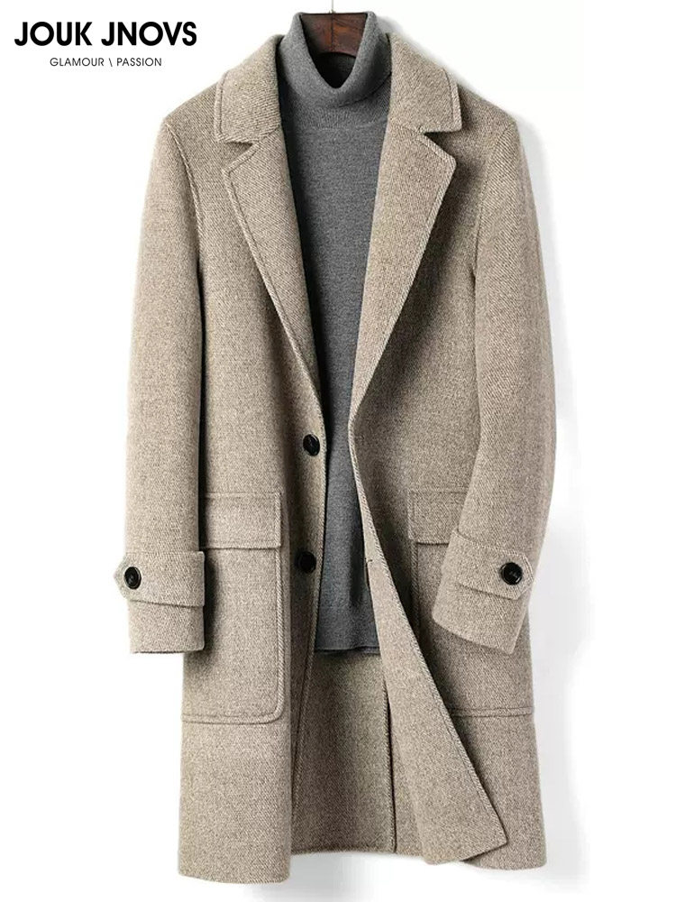 Double-Sided 100% Wool Coat for Men, Autumn and Winter Mid-Length Thickened Silk Lining High-End Cashmere Trench Coat