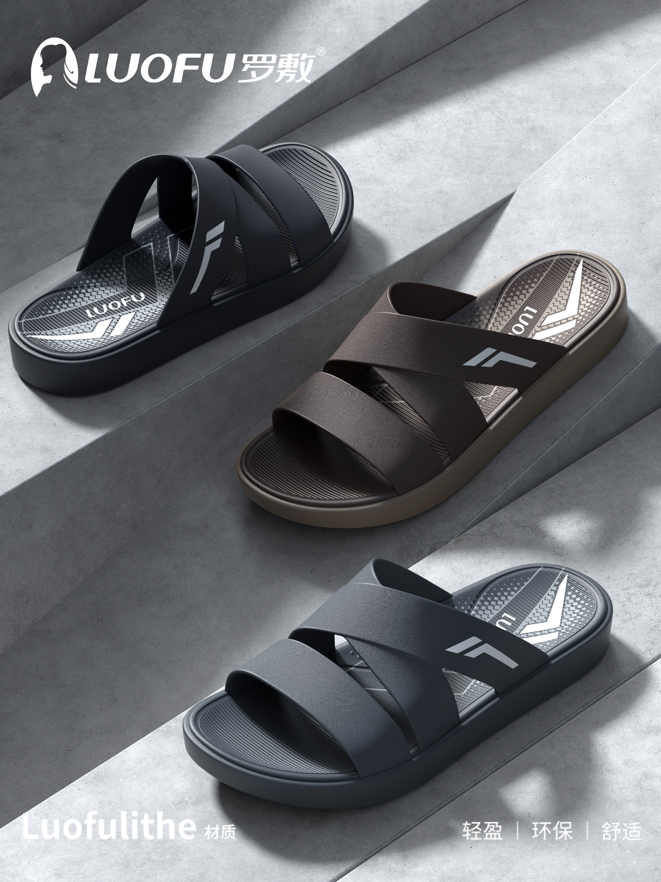 Luofu Luofu Slippers for Men 2025 New Summer Waterproof Non-Slip Soft Elastic Home and Outdoor Casual Sandals