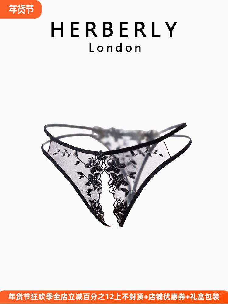 British Herberly Sexy Women's Underwear Pure Desire Style Embroidered Hollow-Out Briefs See-Through Embroidered Thong Trendy