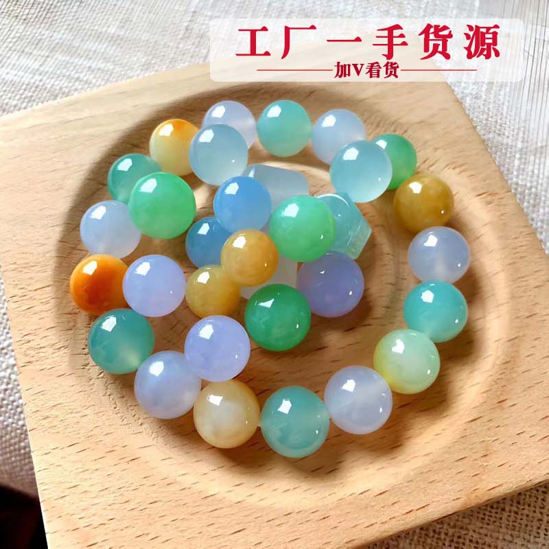 Myanmar Natural Old Mine Jade A-Grade High Ice Type Colorful Single Beads Multi-Gemstone Round Beads Bracelet Beads