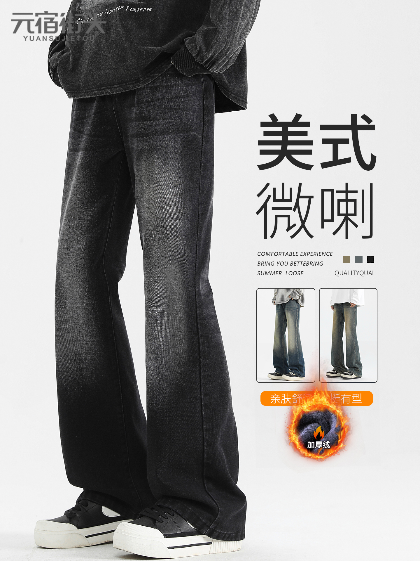 Wukong Has in Stock Retro American-Style Washed Pants with Drape, Trendy Brand Loose Wide-Leg Versatile Warm Casual Pants for Men