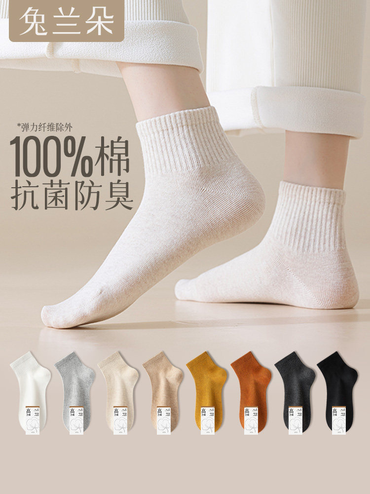 Women's Pure Cotton Short Socks 2025 New Popular Autumn and Winter Models, Odor-Resistant, Antibacterial, Seamless, Mid-Calf Socks for Women