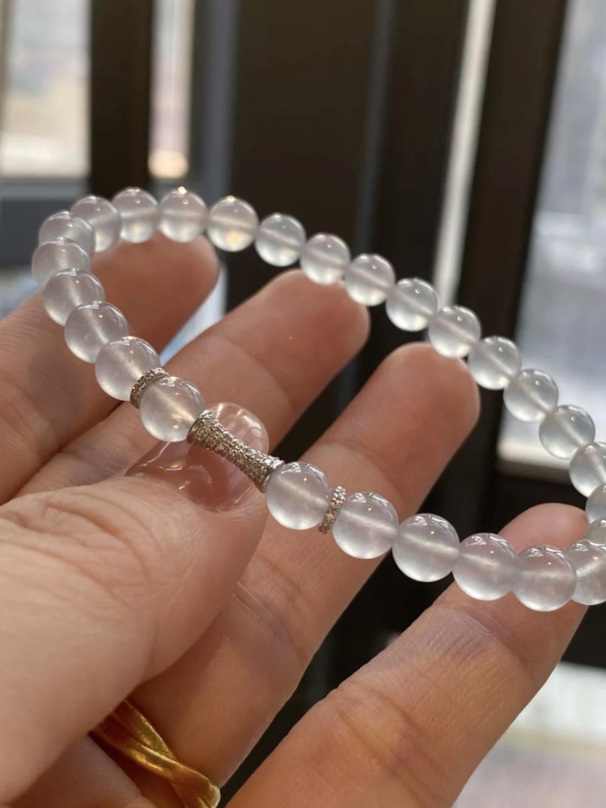 Natural Ice Jade Round Bead Bracelet, Natural Burmese A-Grade White Ice Bracelet, Genuine High Ice Small Bead String, 18K Gold