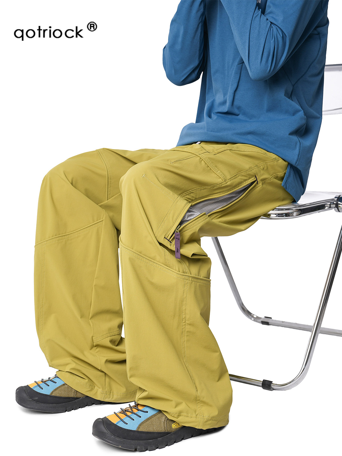 Mountain-Style Water-Repellent Hiking Pants for Men, Autumn and Winter Fleece-Lined Lightweight Sports Casual Pants, Loose Paratrooper Wide-Leg Pants