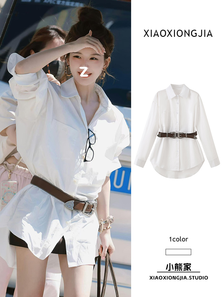 Achu Excellent Tailoring White Waist-Cinching Shirt for Women Summer Professional Workwear Shirt with Slit Design Top