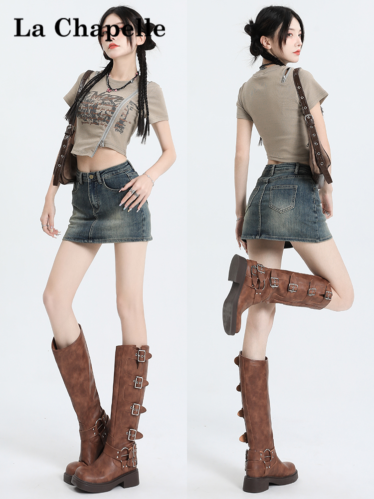 La Chapelle Retro Denim Skirt for Women 2025 New Summer High-Waisted A-Line Slimming Hot Girl Bodycon Short Skirt