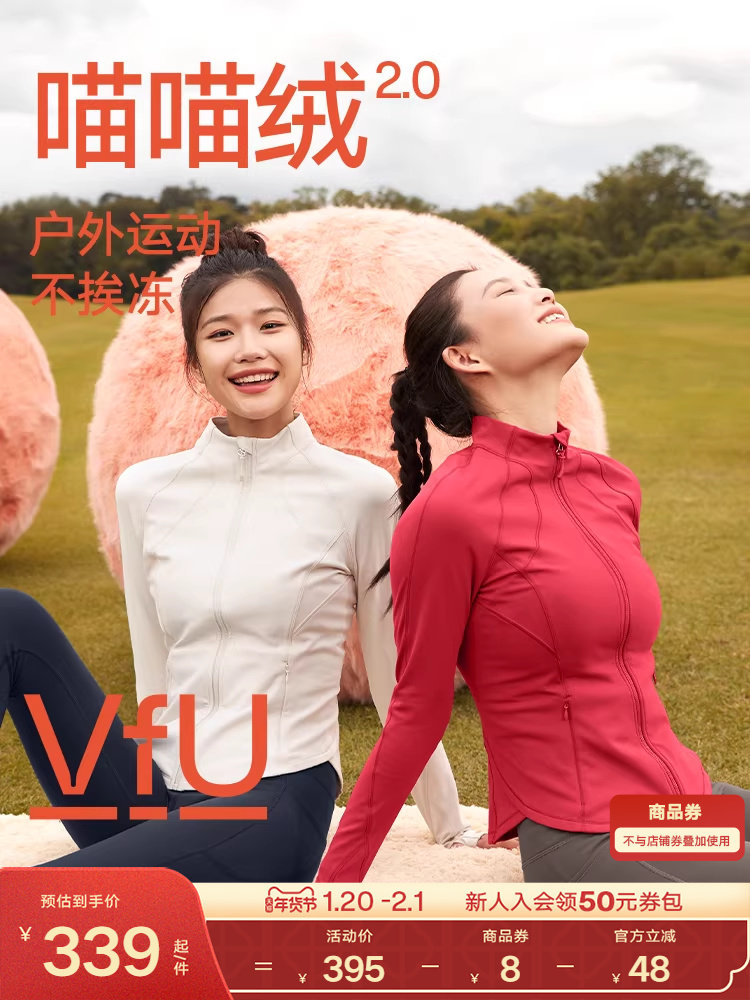 Vfu Meow Meow Fleece Fitness Jacket Women's Fleece-Lined Jacket Sports Top Autumn and Winter Yoga Wear Warm Long Sleeve