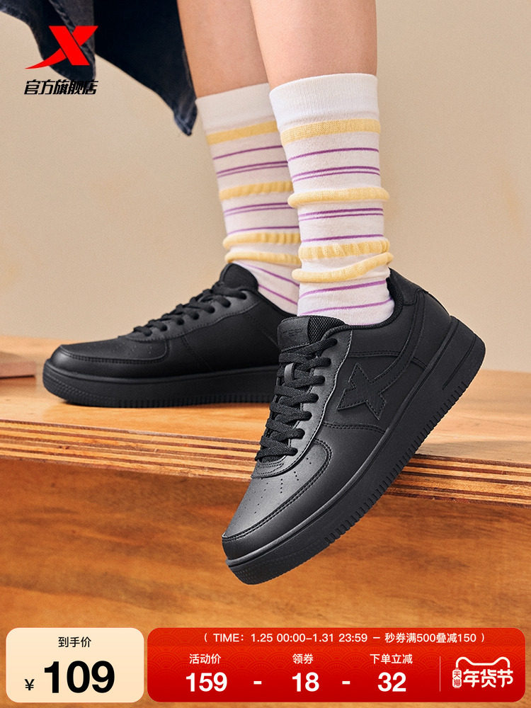 Xtep Air Force One Sneakers, Black Shoes, Women's Shoes, 2025 Winter Versatile Casual Shoes, Trendy Men's Shoes, Sports Shoes