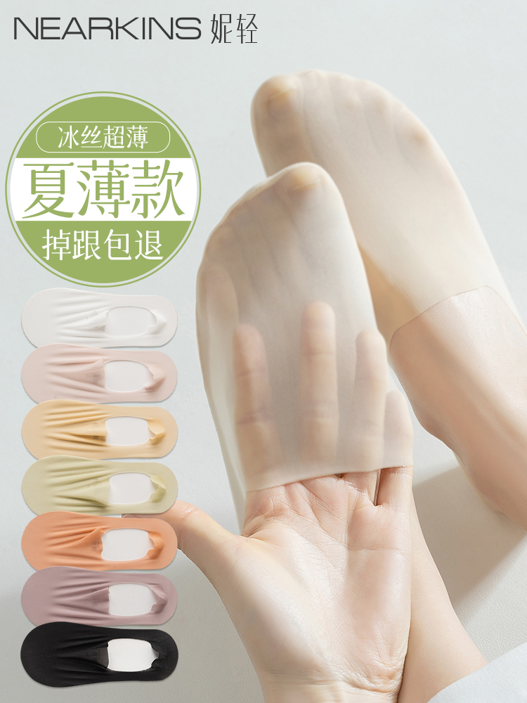 Women's Summer Thin Boat Socks with Pure Cotton Soles, Low-Cut Invisible 2025 New Style, Non-Slip, No-Show Ice Silk Socks for Women in Summer