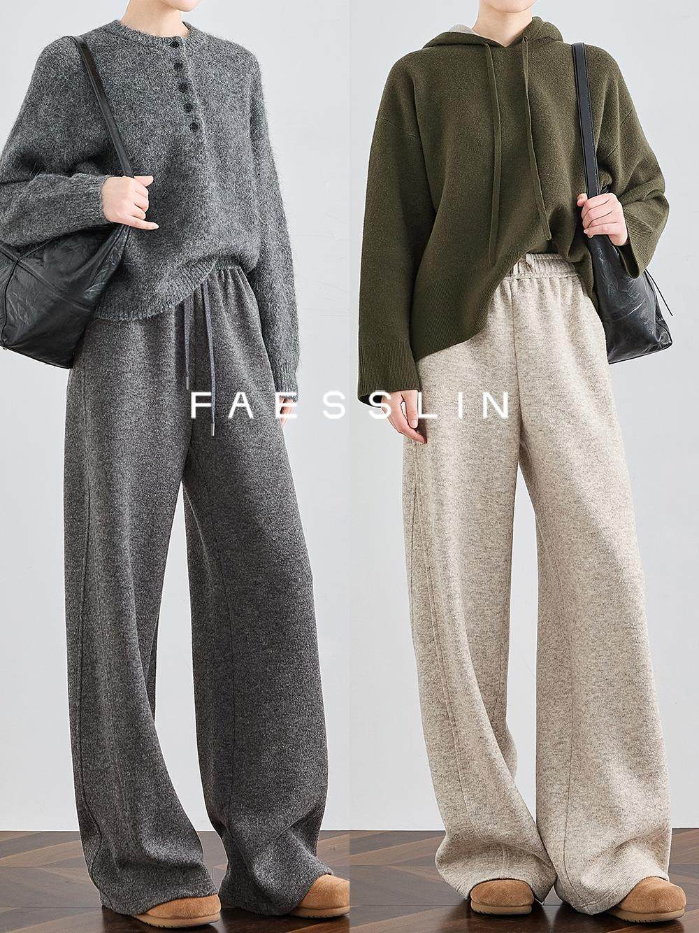 5Werkwen Silk Matte Brown Pleated Tie High-Waisted Slimming Long Pants Autumn and Winter Loose Suit Wide-Leg Floor-Length Pants for Women