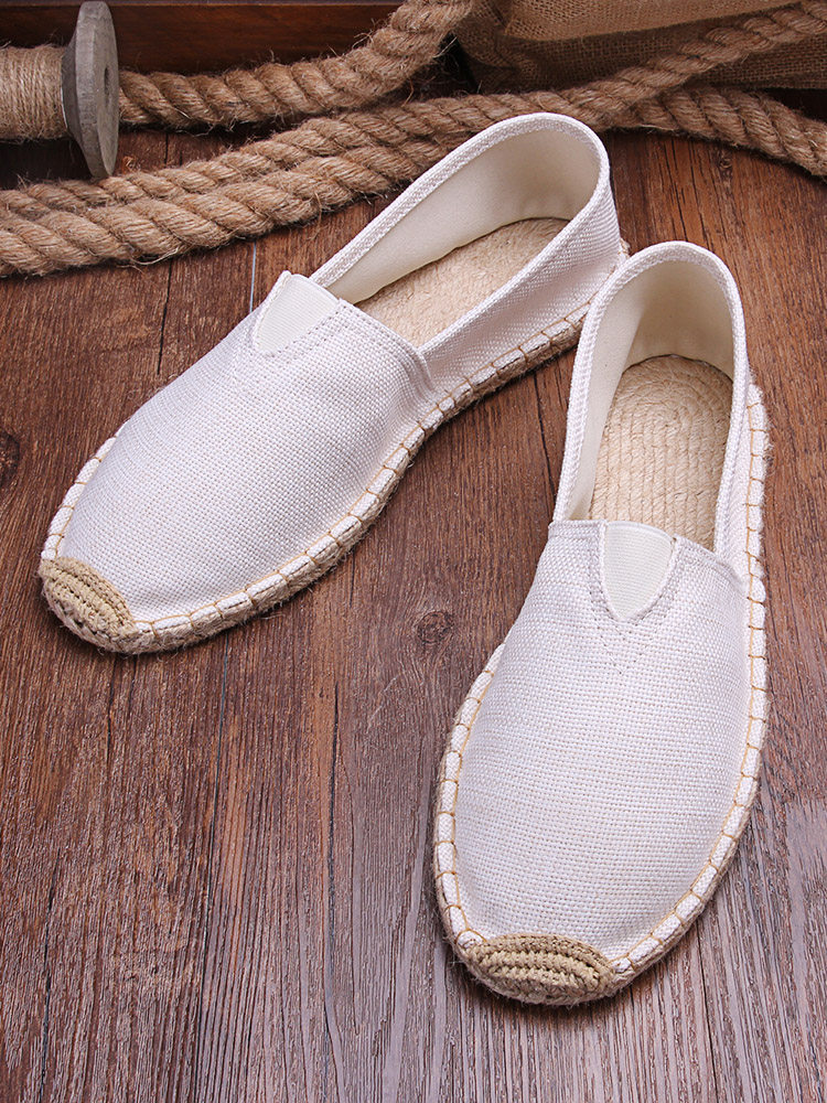 Summer Slip-On Straw Canvas Fisherman Shoes for Men, Linen-Soled Lazy Casual Shoes, Chinese Style Old Beijing Linen Shoes