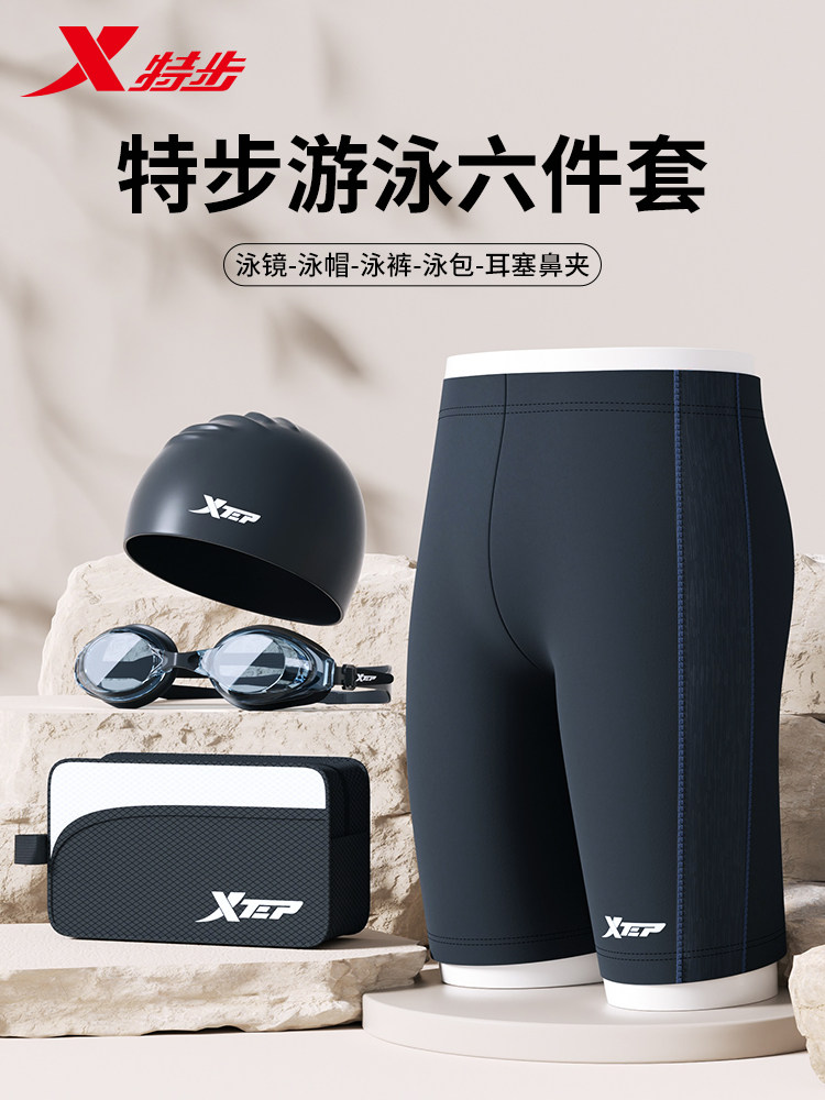 Xtep Men's Swim Trunks for Hot Springs, Five-Point Swim Trunks, Adult Men's Swimwear Three-Piece Set, Anti-Embarrassment Swimwear Set