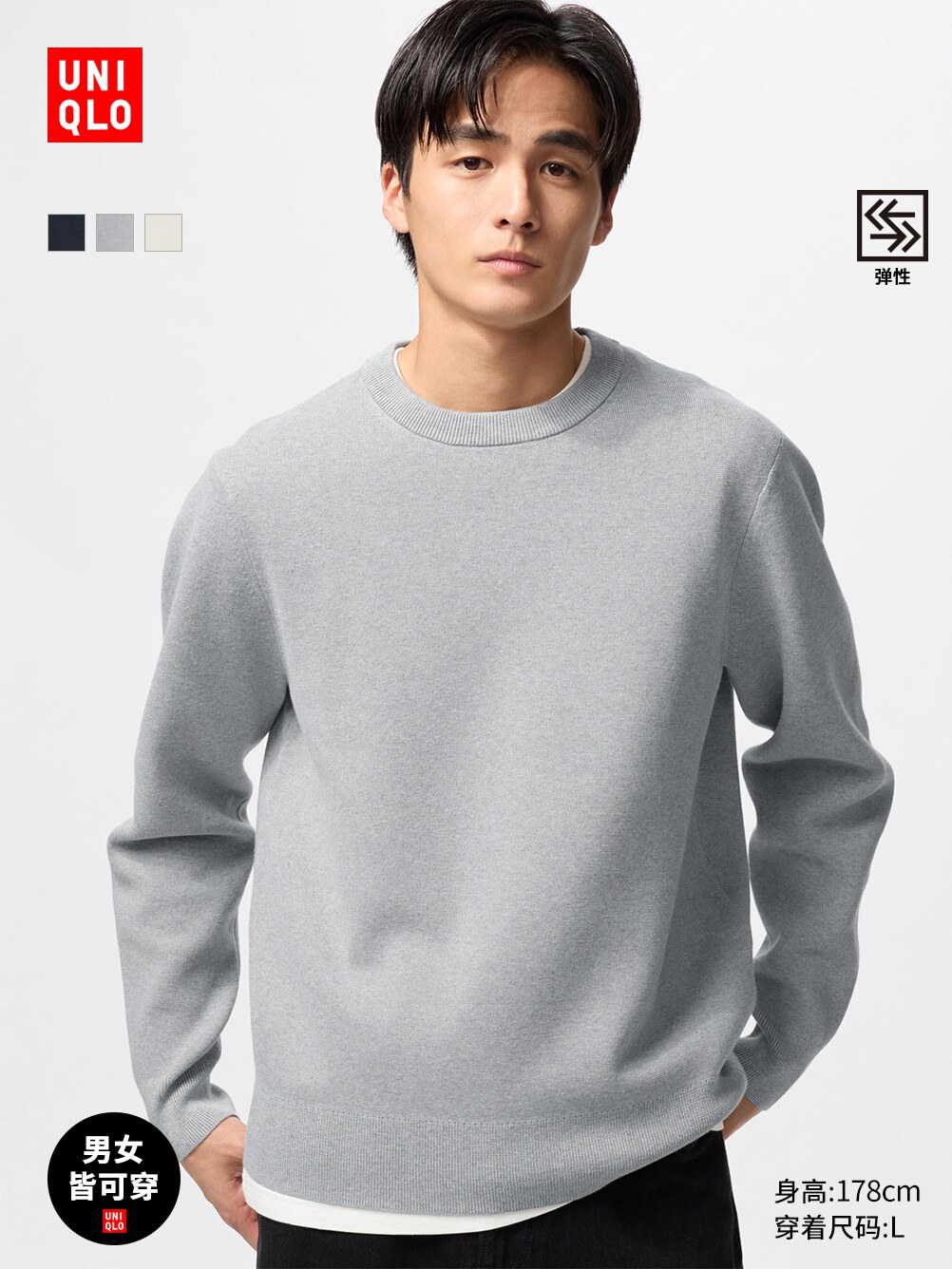 Uniqlo Men's and Women's Ribbed Crew Neck Knitwear Long-Sleeved Sweater 25 New Styles 474203 470159