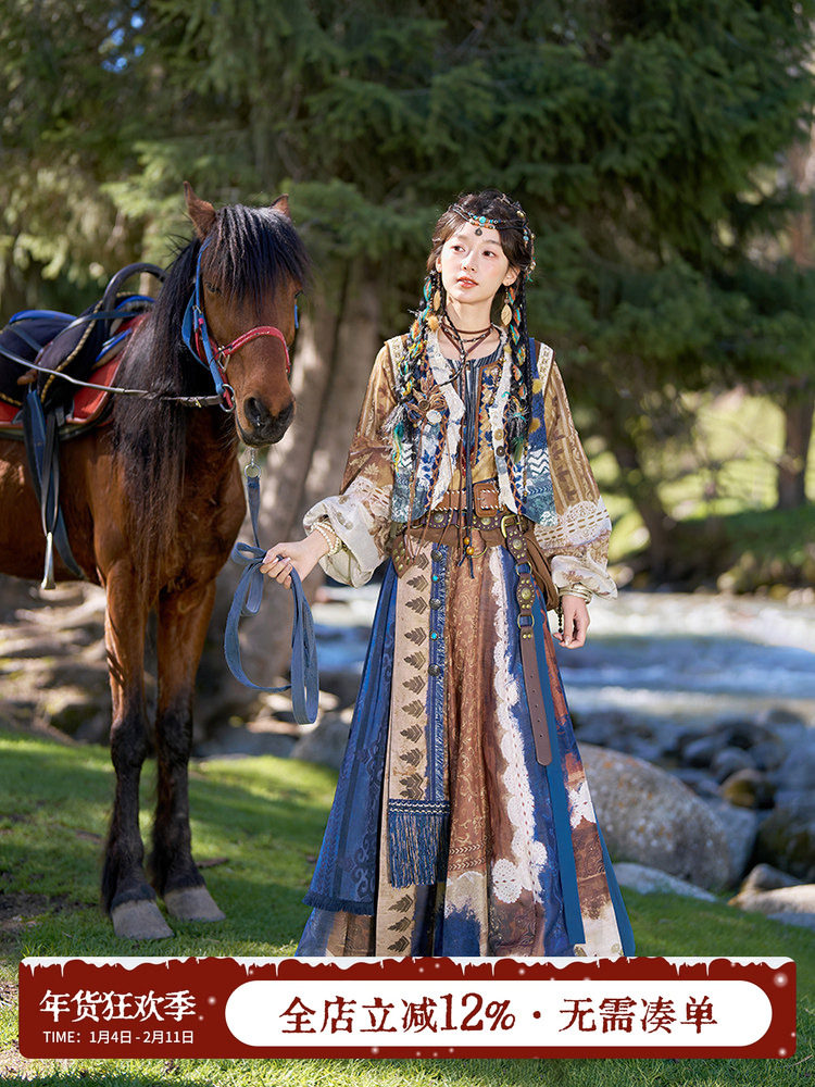 Thirteen Years Old Little Maiden [Song of the Desert] Exotic Style Embroidered Vest Round Neck Shirt Skirt Hanfu Women's Adult Style