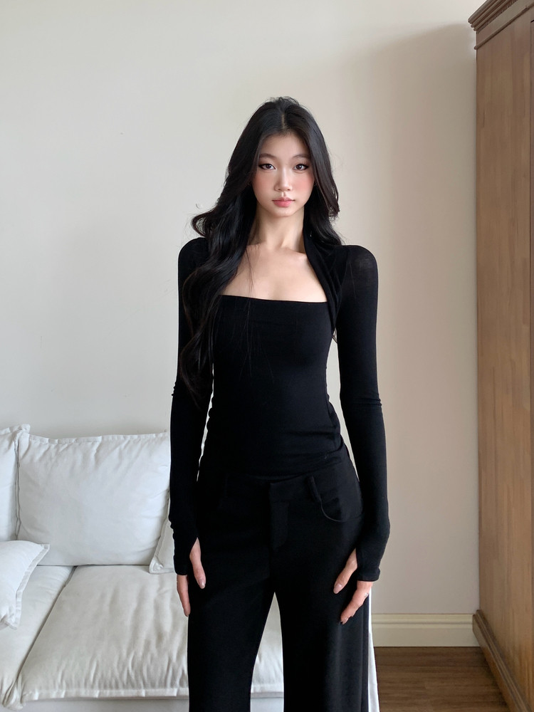 Withmin Base Layer Shirt for Women, 2025 New Autumn Slim Fit Black Top, Long-Sleeved T-Shirt for Women