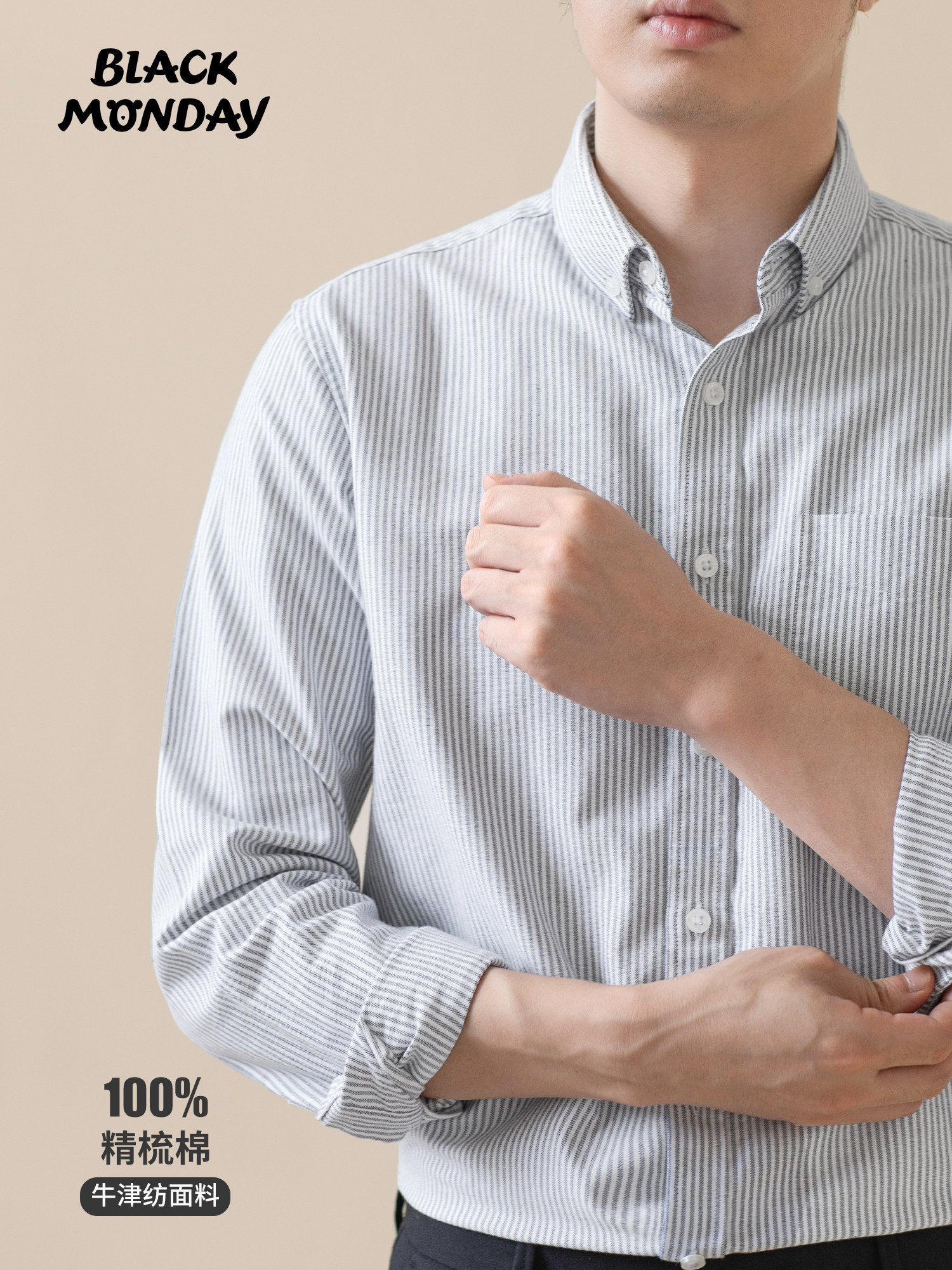 2025 Autumn Pure Cotton Oxford Stripe Long-Sleeve Shirt Men's Business Casual Basic Youth Shirt