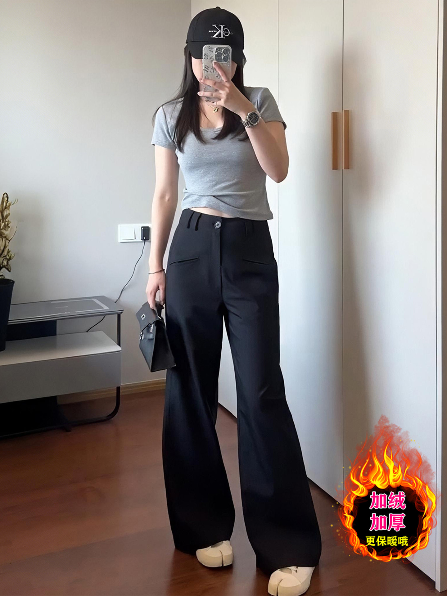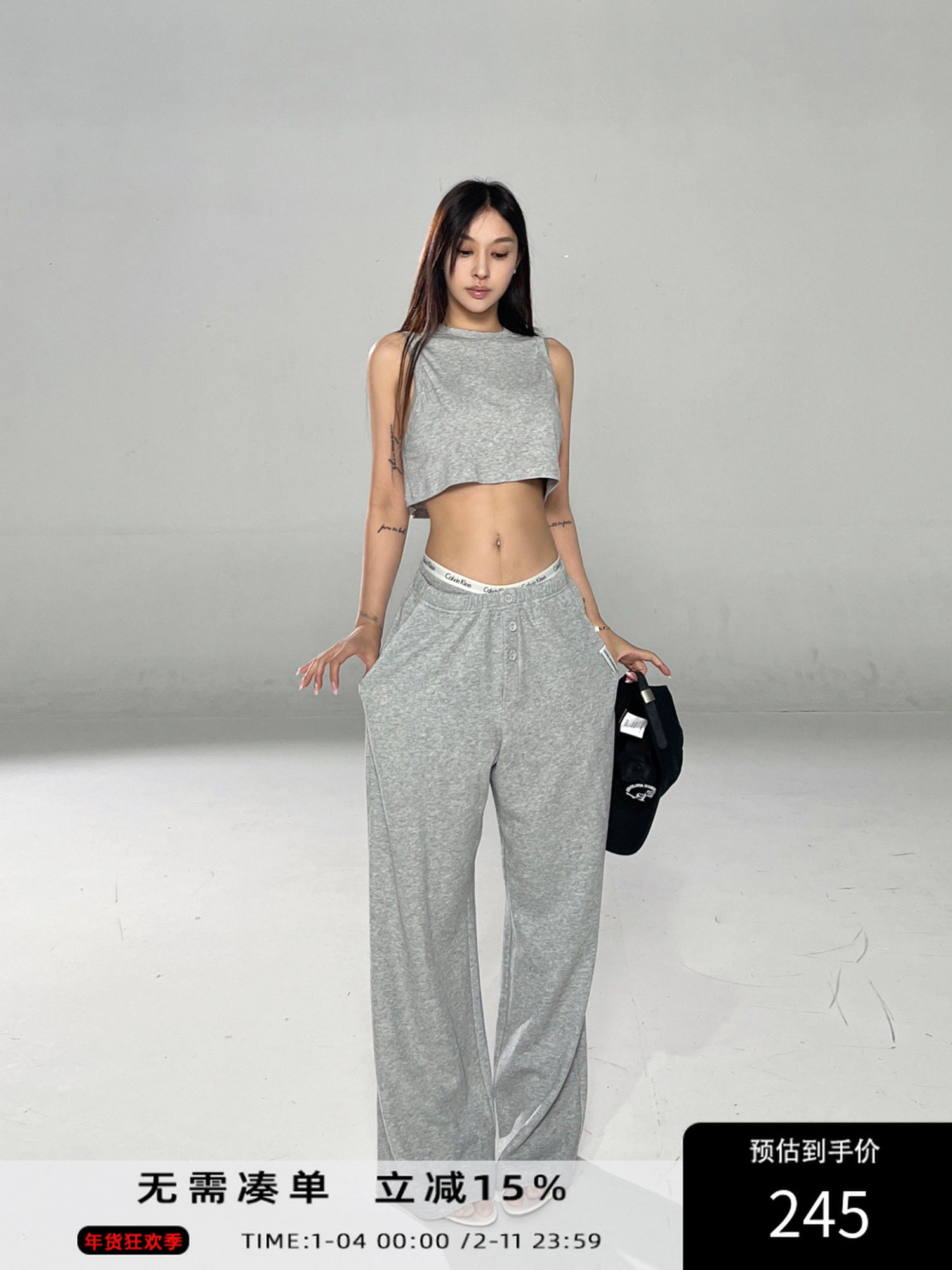 Angelapopewang Black King Gray Button Sweatpants Women's Classic High-End Design Summer Thin Style