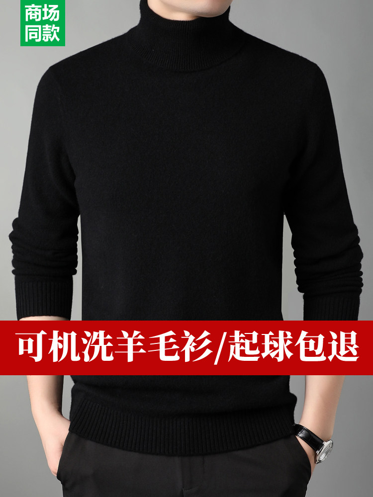 100% High-Quality Wool Sweater for Men, High-Neck Winter Thickened Warm Sweater, Inner Layer Base Shirt, Large Size Turn-Down Collar Knitwear