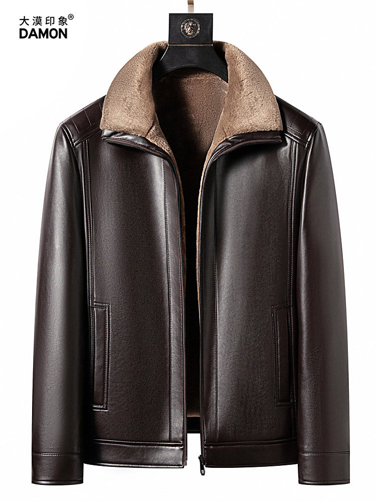 Men's Genuine Leather Jacket with Fur Lining, Winter Thickened Warm Coat for Middle-Aged and Elderly Fathers