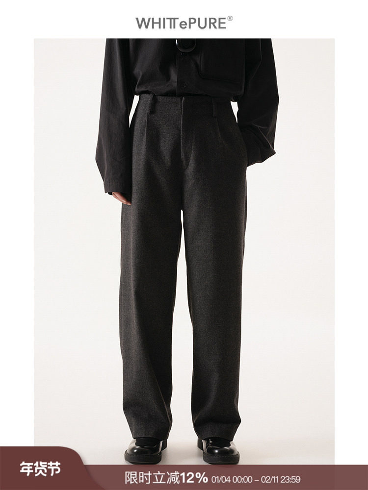 【Whitt Epure】Wp Shirakawa Australian Wool Blend Self-Tie Waist Loose Trousers Casual Dress Pants for Men
