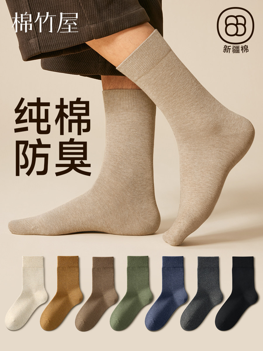 Men's Pure Cotton Socks for Autumn and Winter, Thick Mid-Calf Socks, 7A Antibacterial, Deodorant, Warm, Sweat-Absorbent, Seamless Business Socks