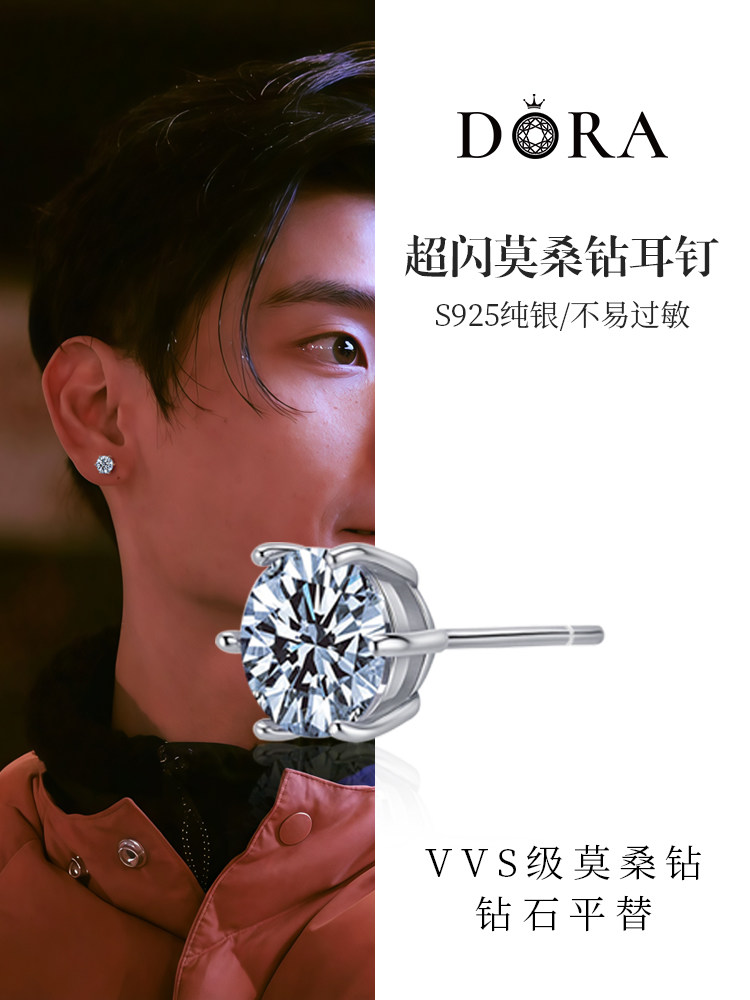 Jiang Qiming's Same Style Super Shiny Moissanite Stud Earrings for Men, Trendy and Cool S925 Sterling Silver Ear Bone Stud Single Earring