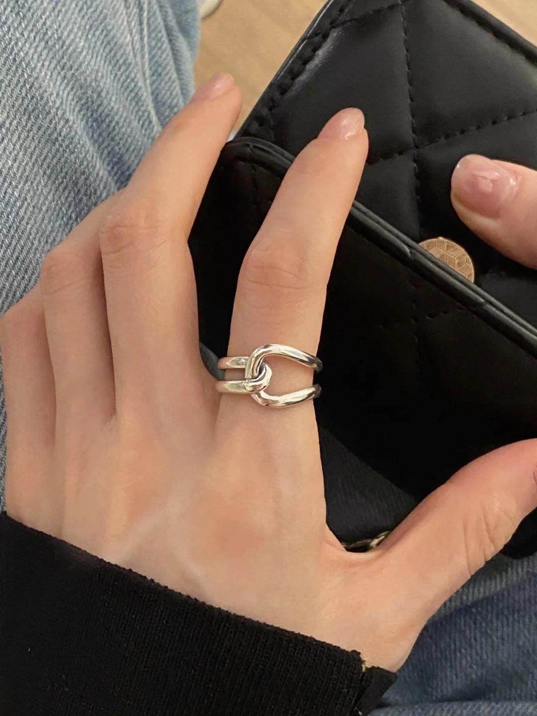 Srrmhyn Double-Layered Interwoven Metal Ring for Women, Niche Design, Exquisite Open-Ended Index Finger Ring, Minimalist Style