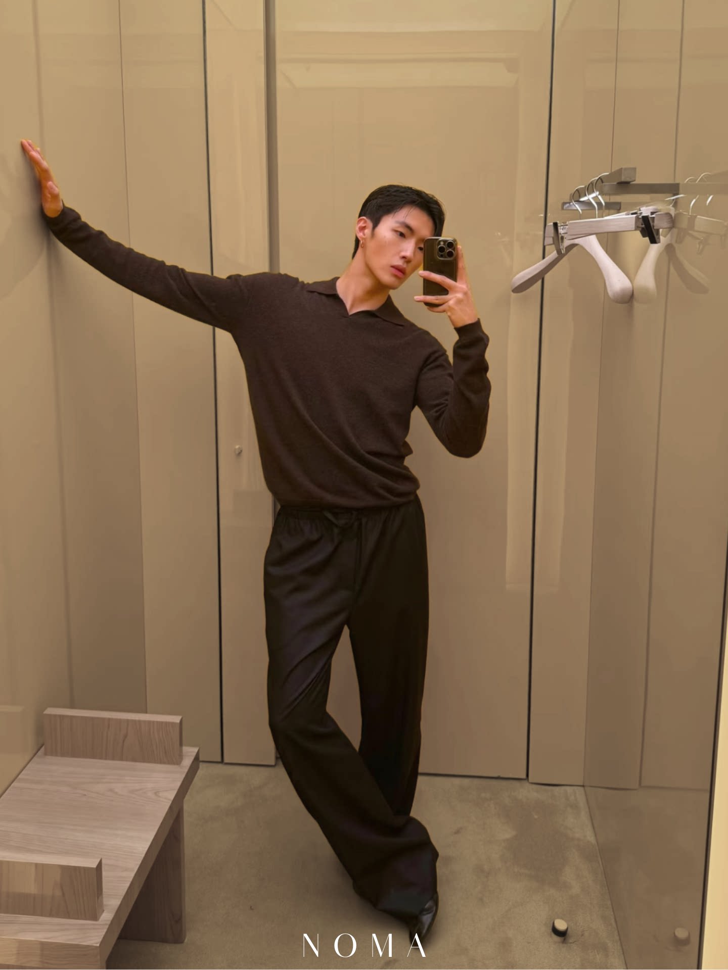 Noma Row Style Gala Magic Pants Xon100 Fine Wool Straight-Leg Elastic Waist Loose Old Money Relaxed Dress Pants