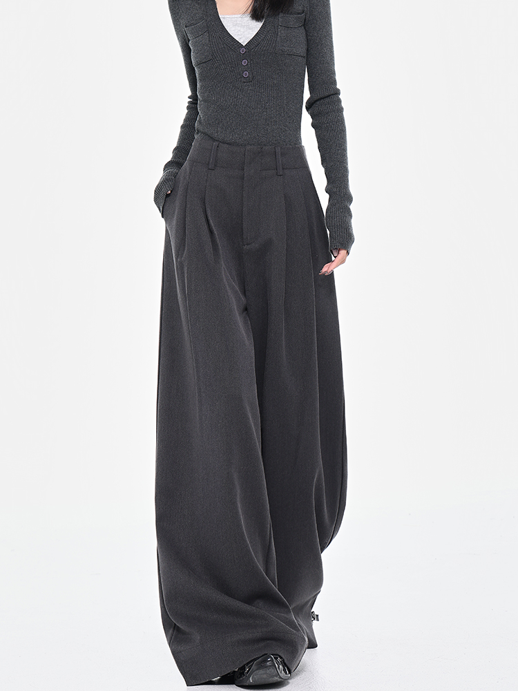 Chemical Girl H1'Stunningly Long Legs' High-Waisted Suit Casual Pants Black Wide-Leg Straight-Leg Pants That Make You Look Taller and Slimmer