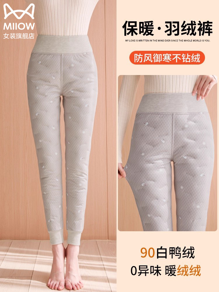 Catman down Pants for Women Winter 2025 New Style Fleece-Lined Thickened Cold-Resistant Inner Wear Warm White Duck down Liner Thermal Pants