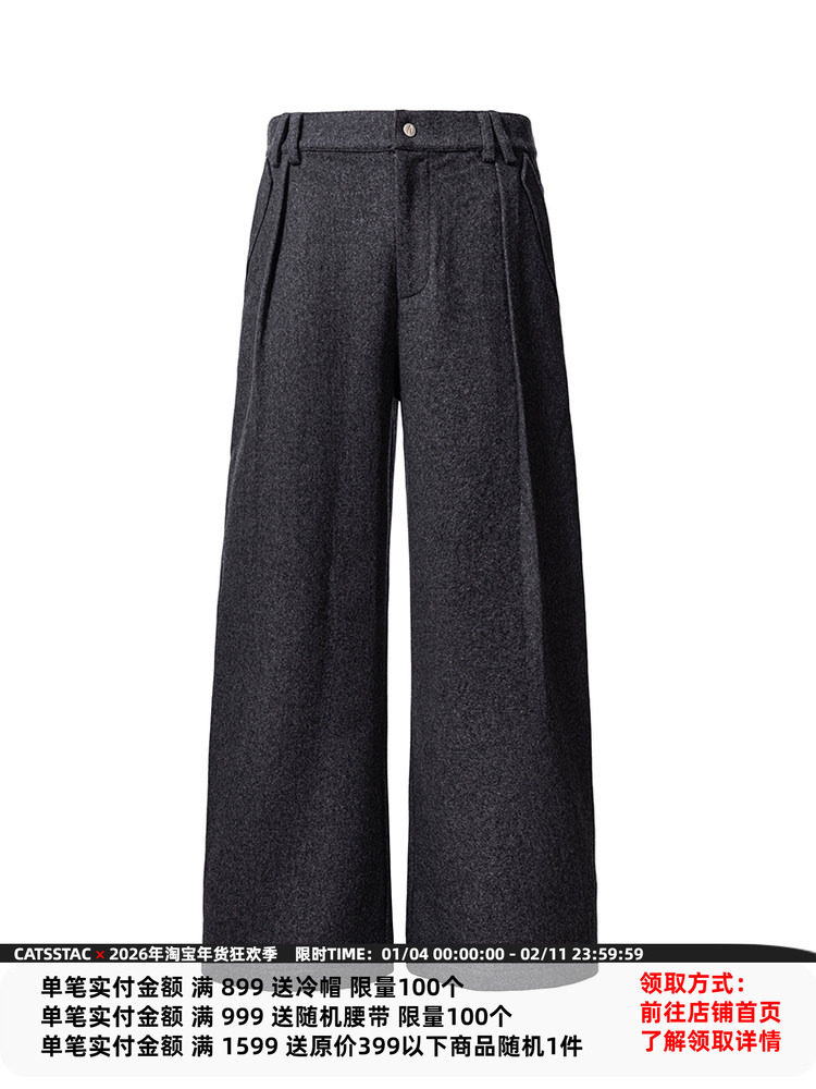 Catsstac Herringbone Wool Blend Wide-Leg Trousers, Straight-Leg Style, Flattering Leg Shape, Simple and Elegant